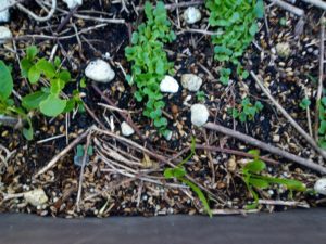 西隣のKさんから頂いた蚕豆の種18個が発芽しました。多分一つ位未発芽のものもあるとおもうんですが。西隣さんと同じ日に蒔いて、同じ日に発芽しました。もしかして、F1?