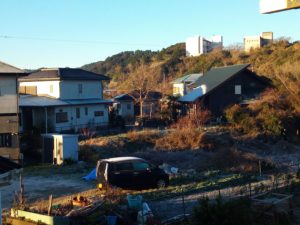 以降、左官屋さんを始めてしまいましたが、生セメントが無いから補修が不格好になりました。放って置くとドンドン生える大芝をカットし、西隣さんの処までモルタルを打とうと思います。一応話して許可を貰ってからね。それまでは自宅分を作ります。