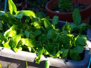 中: 我が家の玄関前のホウレンソウもぐったり凍って居ました。