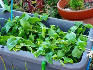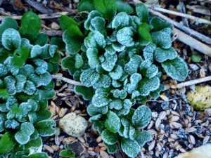 中: 我が家の玄関前のホウレンソウもぐったり凍って居ました。