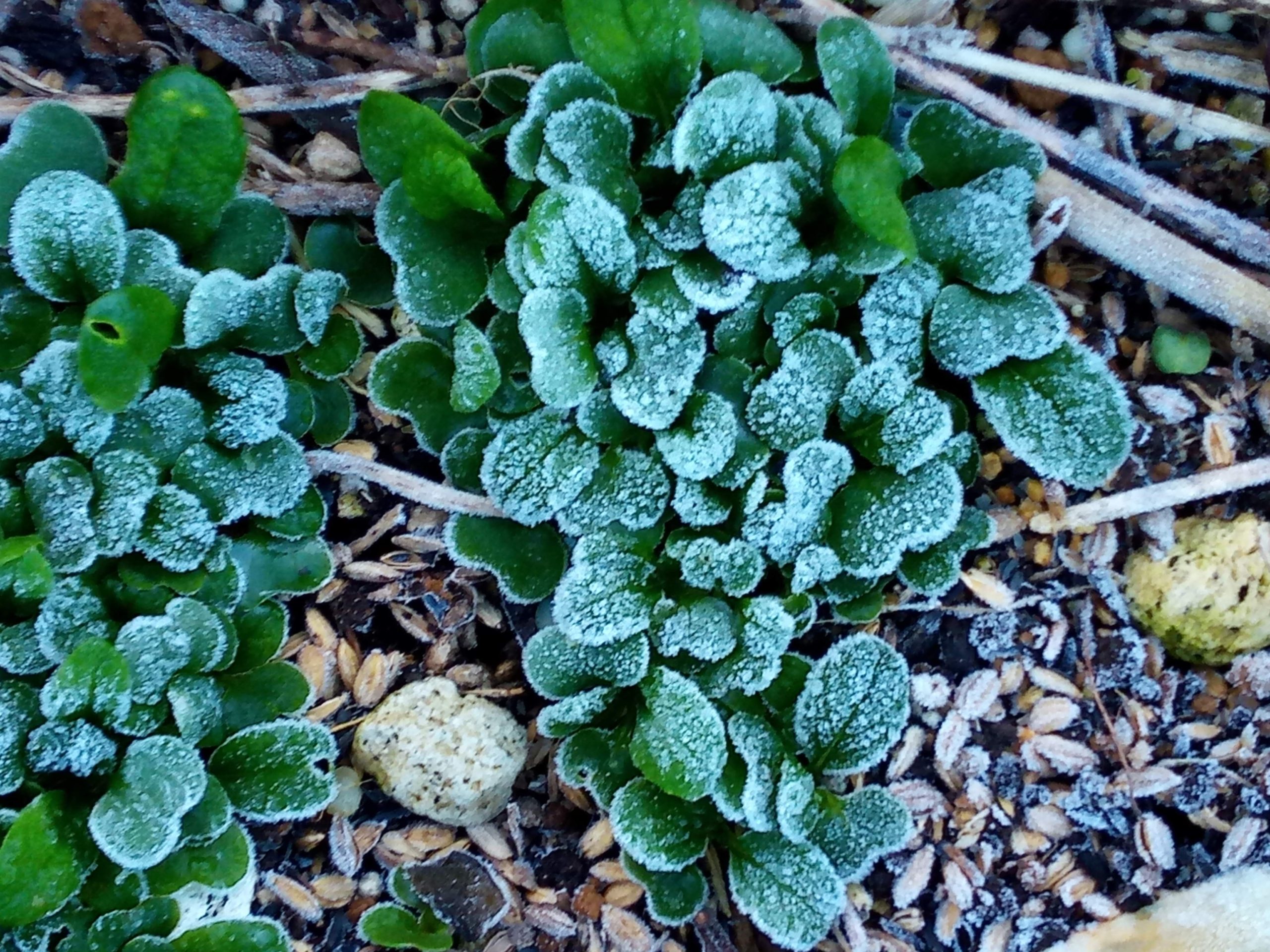 ウ~!寒い!!ちぢみ小松菜も霜で縮み上がってしまいました。