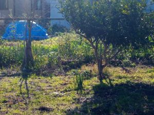 15時半少し前、西隣さんのホウレンソウの生育と葉の黄色が氣になったので、ボカシを挙げて来ました。