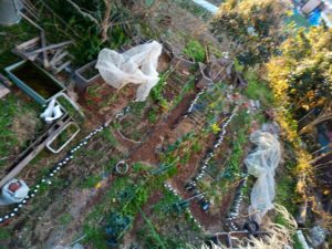 キャベツ達には寒さの他に3月の虫害が予想されます。その頃になったらネットを土決めで張ります。