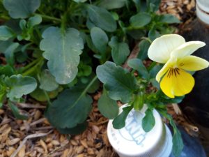後から植えたビオラのグループも5株中、3株に花が上がりました。。