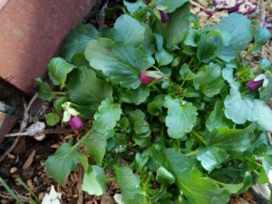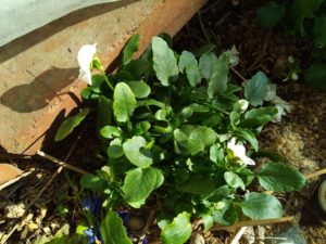 後から植えたビオラのグループも5株中、3株に花が上がりました。。