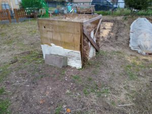 左: 私が周りの草を頂いてしまったから、緑が無くなってしまった西隣さんの堆肥枠の周り。