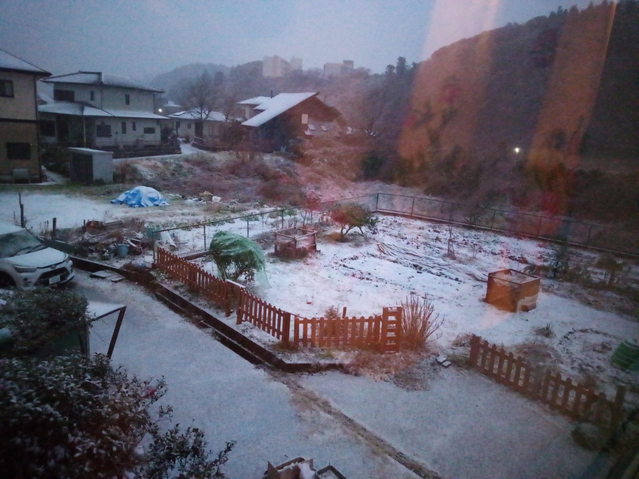 東京から通っていた頃には裏に雪が残っていた事があったけれど、雪景色は定住してからは初めてじゃないかなぁ。今日は真っ白な世界が見られるとは思っていませんでした。寒風で晒されるよりは植物達は雪がある方が楽らしいから、それも良かったのかも知れません。カラーはきっと一旦葉を落として地下に潜る事でしょう。春が一歩近づいたんだよ。。