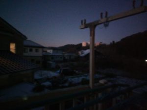 さぁ、白い世界も見れたので、今日は青い空がみれるかしら?表は未だ真っ暗です。