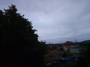 雨戸を開けたら東北東の空に電の明るい光が広がっていました。