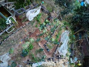 この様子を観察して、外のバケツで籾殻と米糠を混ぜた物を作って置き、生ごみの乾いた物や茶殻と混ぜて畝表面に敷いて行きましょう。先ずは物干しのレタスの生長が遅い方に確りと施して見ましょう(完了!)。