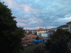 雲に覆われた空が西南西から少しずつ晴れて来ています。それでも東の空は雲が厚い。