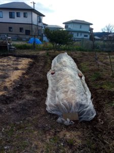 右: 温州さんとお借りしている畝。西隣さんは来月初めかなぁ。オキシロンなんちゃらでロックダウンされる前に来た方が良いと思います。金柑がかなり柔らかくなって来ていますよ。