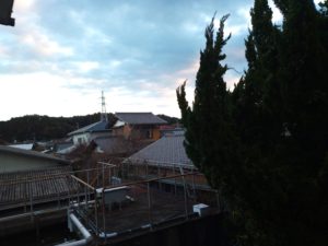 雲に覆われた空が西南西から少しずつ晴れて来ています。それでも東の空は雲が厚い。