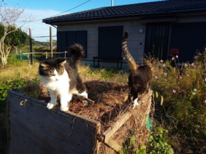 私の生活でリズムを作ってくれる相棒たちの近影です。ガーデニングパートナーの福とうめ、そして一番長い付き合いのトラ子です。福とトラ子は同じ胎の兄弟ですから、”長い”と言っても2-3か月の差です。兄弟なのに性格は全く違い、人に対して社交的な福…尤も知っている人だけですが…、ヒトと付き合う氣なんかほぼゼロのトラ子です。