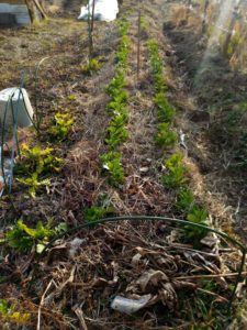 どうやら曇りになりそうな一日です。庭には数日に一度土竜塚がある位でマダマダ植物達の地上部の変化は感じられません。葉物野菜の小さな、小さな苗が倍の多きさにいきなりなった位かな。