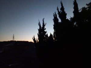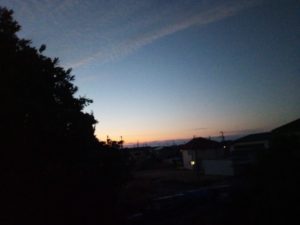 細い左舷の月が右の写真に見えます。東南東―南東から釈が出ています。