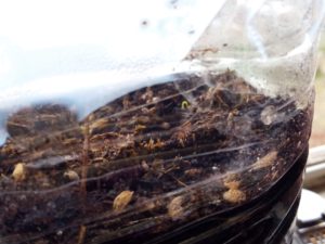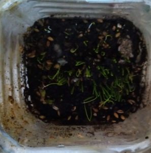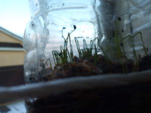 winter-sowigの第三のボトルにハッキリ葱の発芽が2つ見えます。嬉しい!!ボトルもしかり結露しています。嵌め殺しの窓にボトル三本は起きっ放しです。物干しでも良いのですが、未だ数が少ないから廊下の窓で十分です。winter-sowingをやっている人は雪の積もった庭に何十というボトルを置いて育てて居るんですね。私も数が増えたら物干しに置き始める事になります。