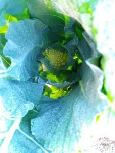 もうじきロマネスコの収穫です。未だ顔を出しているのは7株中1本だけ。後は、恥ずかしい!、と葉っぱで顔を隠しています(笑)。思ったより早く収穫かしら。春が早い?