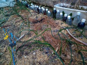 葱類に玉太りの肥を上げる時季は春の、冬に近い時期…訳が分からない説明だけど、梅が咲いて、鶯が鳴こうかどうしようか迷っている…今じゃないか!?という訳で玉太りの日を上げました。様子を見ながら2月一杯の日曜日に上げて行きます。