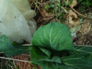 私はキャベツやブロッコリーは虫が付く、という先入観があるせいか、最初からトンネル掛けて~、見たいな事をしてしまううんですよ。実際、8月末から10月までは虫が色々と居ました。でも、このキャベツに関しては垂直仕立て栽培を知ったお蔭で、トンネル知らずで育てました。心配性の私が良く出来たもんだ、と思います。実験だ、と思う氣軽さが良かったのかも知れません。虫が付いても『やっぱり!』、とやっていたかも知れませんが、付きませんでした。
