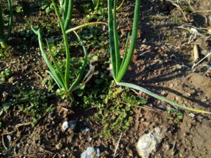 左: 玉葱の処に生えていたのは、大根?菜花?梅の樹の下にも生えていました。