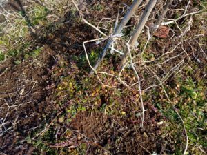 少し草刈りをしました。これも肥料になりますし、西隣さんの使う畝の真上は物を植えられる様にして置こう。ジョウビタキさんが私が鎌をかけた後を啄んでいます。可愛いなぁ!