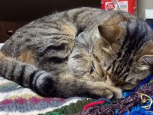 7時、お風呂の後に炬燵に入ったら、福が私の膝をチョイチョイ、と触って来ました。トラ子も帰って来てカリカリを食べ直しています。猫達は三ツ星グルメが本当に好きですね。