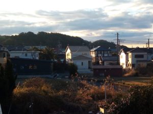本日の日出は6時19分、日の入りが17時26分です。日の出は31分、日の入りも丁度1時間延びましたね。強い光が東というよりは東北東から差している?下段右の家の壁が光っていますよね。