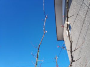 左: 梅の花は各枝に一つあるか、ないか…昨年の大活躍で疲れたんですね。気付かなくてごめんなさい。