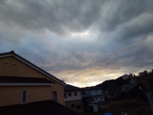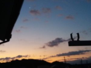 本日の日出は6時18分、日の入りは17時27分です。目を凝らすと(笑)、上の方の少し大きめの雲の上、屋根の縁に近くに星が綺麗に輝いていたんですよ。