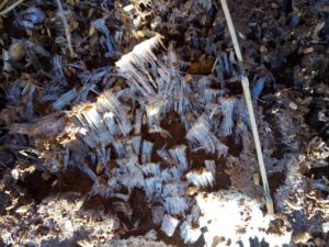中: 脇の通路の霜柱。地面もジャリジャリでした。