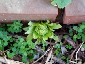 右: 蕗の薹は北風や霜に負けて黒くならずに育っています。