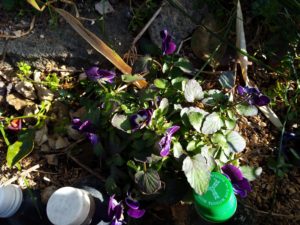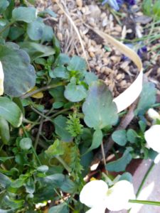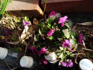 ビオラの花殻取りをしました。植えてから寒くてあまり花が咲かなかったから、初めてですが、種が付いています。10株と上段中と右が同じ株です。ネモフィラが右の写真には発芽している様に見えます。