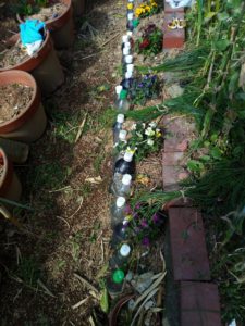 7時半陽射しが差して来ましたが、強いです。嬉しくなりますね。周りのお家の屋根が乾いているから、庭土も乾いていますね。水がないと生きられない微生物のために水を撒きましょう。