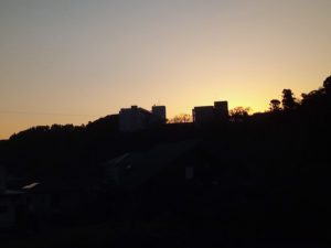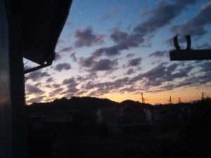 太陽が真西に沈んでいます。
