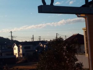 7時の月の砂漠を聞きながら撮った一文字です。南東から始まり、西南西へ。一時間後には消えました。