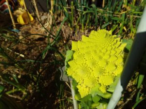 我が家の蕗の薹を10個ばかり積みました。お昼ご飯には間に合わないですね。大根、その他の味噌汁とご飯、山東菜のお浸しを鰹節で頂きます。