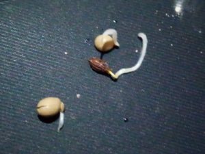 左: コーティング種子ですがコーティングが割れ始めています。