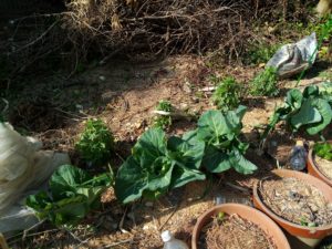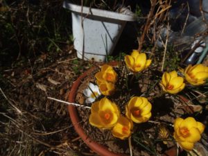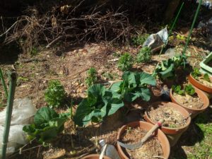 庭では植物達が幸せ感を一杯に感じていました。クロッカスが鉢一杯の花を見せ、キャベツは毎日大きく育ち、いつもは土がむき出しの脇の通路も刈草で覆って上げる事が出来ました。