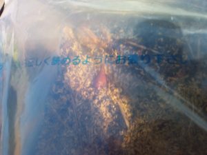 昨年は庭仕事を夏の間徹底的にさぼったので、茄子はなりっ放しでした。その茄子を地表近くに埋めて枯草を掛けて置いた所から掘り出して種を10個ばかりいただきました。これからプライミングに入ります。多分順序から言ったら茄子が一番先なんでしょうね。