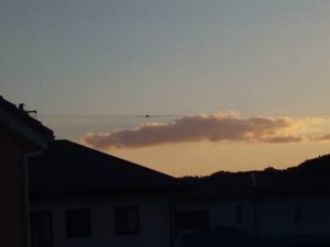 風が収まり、猫達は薄暮のハンティングタイムです。夕暮れ時には竜見たいな雲が南東と南西にありました。