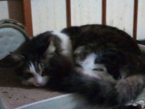 2時半に目覚めたら、福がご飯を待っている態勢で座っていました。カリカリを入れているとトラ子とうめが参加して来ました。タイガーさんがその前に来て、食糧庫を漁っていた…。でも、諦めてそのまま帰って行った。らしい。