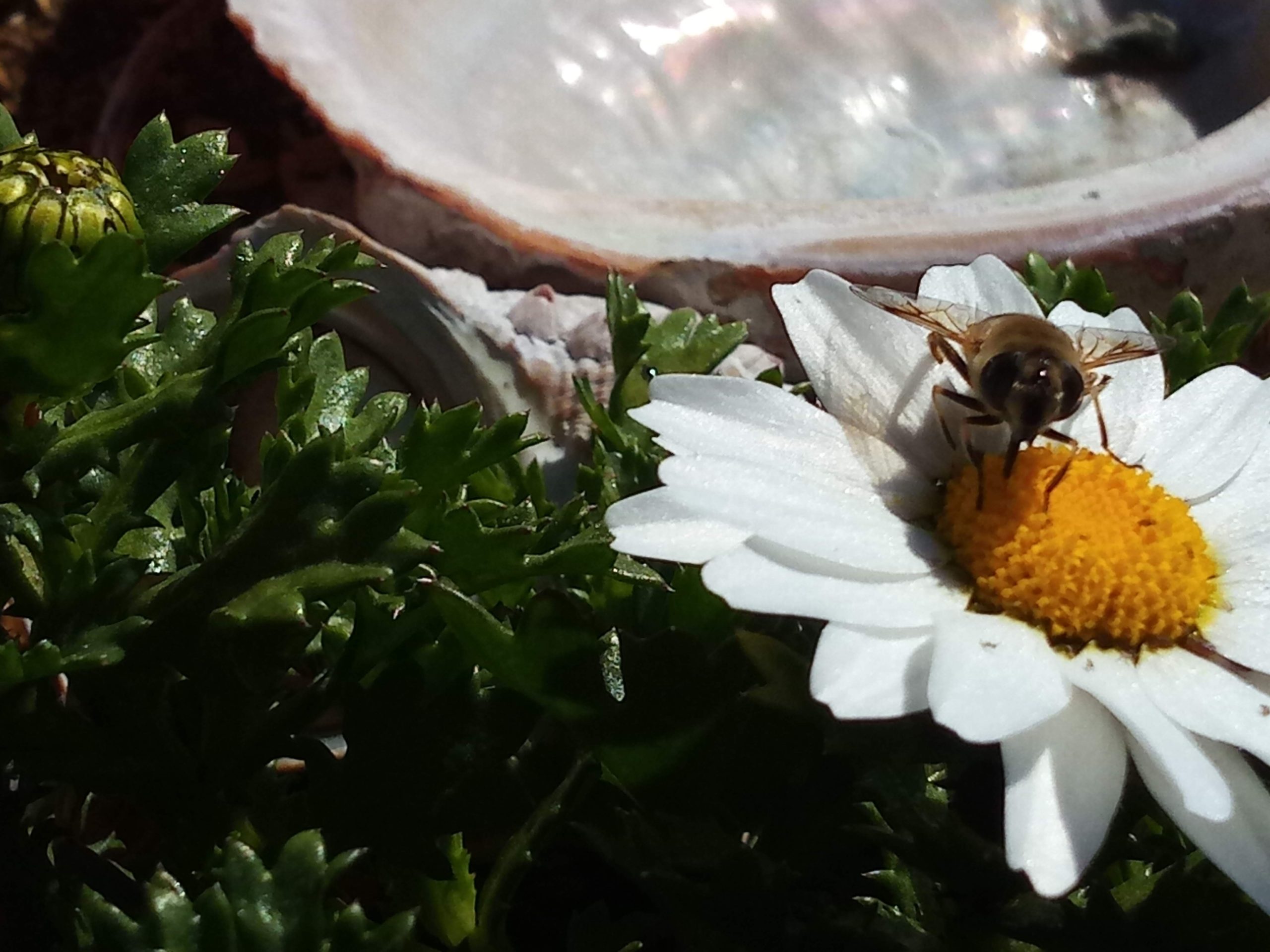 昼下がり、玄関前にもお日様が回って来ました。暖かさを身体に受けて蕾や花を見ていると、蜂やナミハナアブが懐かしい羽音を響かせてやって来ました。きっとやっていたけれど、私が氣付かなかっただけなのかも。虫たちの羽音を聞いていると、何処かで起きている紛争は夢幻か、と思えて来ます。