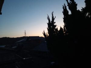 5時半になったので、雨戸を開けました。東―南東は明るくなっています。二番電車が通過して行きました。