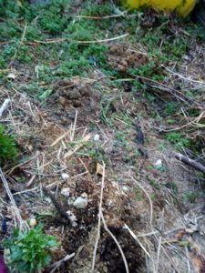 右: 夏蜜柑の下に土竜塚が幾つか出来ていました。