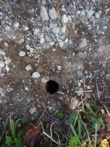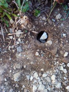 昨日の朝、脇の通路への入り口に今まで見た事が無い穴が!ついいたずら心を起こして砂岩の欠片を5-6個入れて置きました。一時間後、土竜さんがブーブー言いながら穴を修復して土と私が詰めた石を出して来ました(笑)。『どこのどいつだよ~。こういう悪さをするのは~!』🙇ごめんなさい!土竜さん。