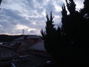 7時前、西南西―西は晴れています。東は雲が多いですね。
