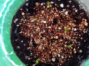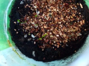 。上段左から#1-5の人参ボトル(催芽でwinter-sowing),#1が5-6個発芽しています。