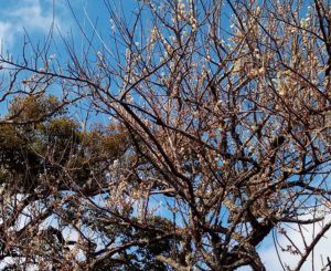 右: Iさんの畑の梅も天辺の方まで花が着きました。