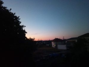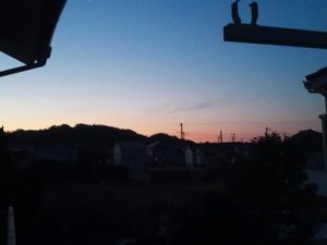 5時15分位に東の雨戸を開けると、東だけが白んでいました。南南東の海の上も赤味が出ている様な、出ていない様な…。